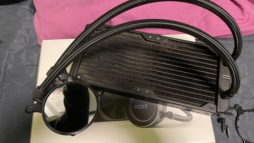 NZXT Kraken X52 vizhűtés a képeken látható állapotban. AMD lefogatója megvan. Vezetékei is megvannak. Hajszálkarcok vannak de nem látni mikor világit. Ventilátor nélkül. Sajnos a gyári ventije már megadta magát igy nincs meg nekem. 2x ARCTIC - P14 PWM venti volt rajta tökéletesen hűtötte. Illetve az intel lefogatónak letört a menetes csavarja de tökéletesen becsavarható ezt fényképeztem is. Nekem intel i7- 7700 at hűtöte és 60 fokot sem érte el játék alatt sem.