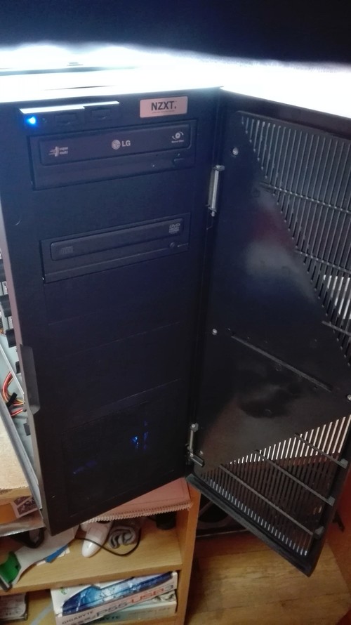 4db házhűtő NZXT ventilátorral, 2db hátul alul, és 1 nagy hátul felül, 1 nagy pedig elöl ami persze világít is, illetve porszűrő betétes.