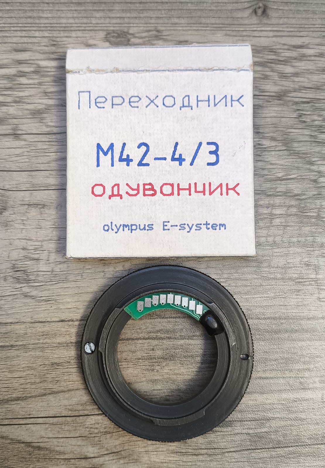 2-3. kép: igazi különlegesség - M42 objektívek 4/3 rendszerű gépekre adaptálásához, elektronikával, ami a rekeszértéket átviszi a gépre, így a zársebesség állításával "félautomata" módban lehetséges a fényképezés. Próbáltam (nagyon régen), működött. 4000,- Ft