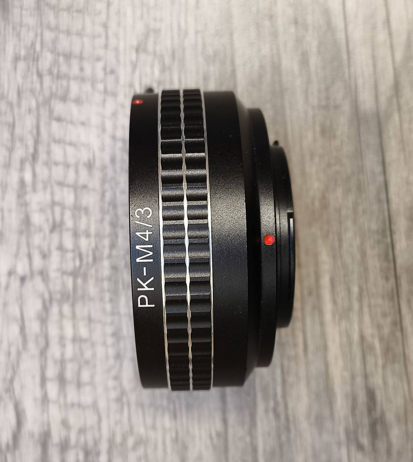 1-2. kép: PK - M4/3 Pentax objektívek M4/3 rendszerű gépekre adaptálásához - automatika, elektronika nélkül, manuális használathoz. 2500,- Ft