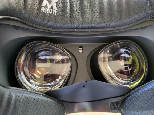 A bal oldali lencsén van egy kicsi karc amit szemüveg okozott, de használat közben nem észrevehető.