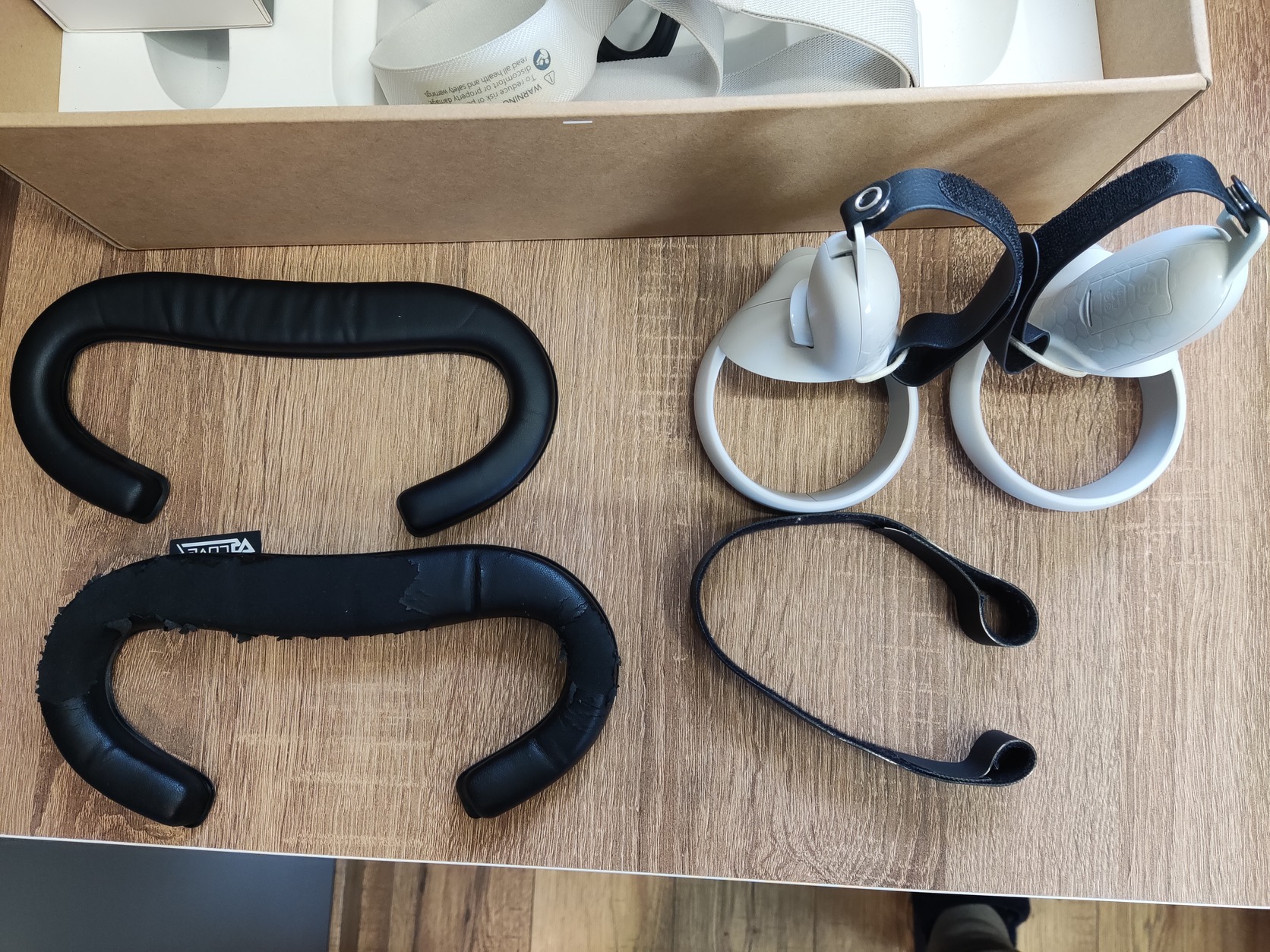VRCover facial interface (lila szinű műanyag rész, 2 műbör (PU leather) párnával, amelyiket használtam eléggé rossz állapotban van (lásd kép), valószínüleg nem szerette a sok mosást, másik kiváló állapotban)