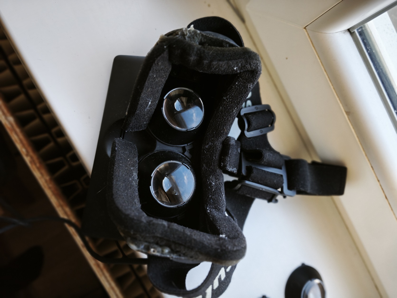 Az eszköz korából adódóan az arc felőli szivacsréteg elkezdett elöregedni és leválni (ez minden DK1 típusú szemüvegnél előforduló típushiba 10 év után). Én nem akartam ragasztgatni, hogy megőrizzem az eredeti állapotát, a restaurálását az új tulajdonosra bízom. Ezt leszámítva esztétikailag szép darab.