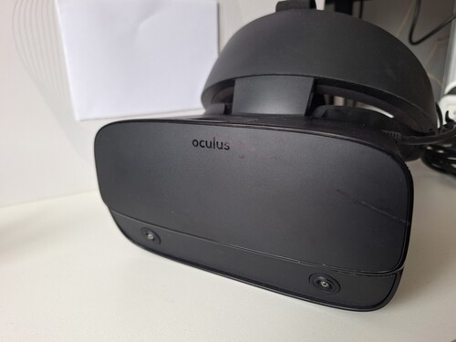Oculus Rift S VR szemüveg és karok. Tökéletesen működik, eredeti dobozában. A fejrészen lévő a képen is látható karctól eltekintve újszerű állapotban van.