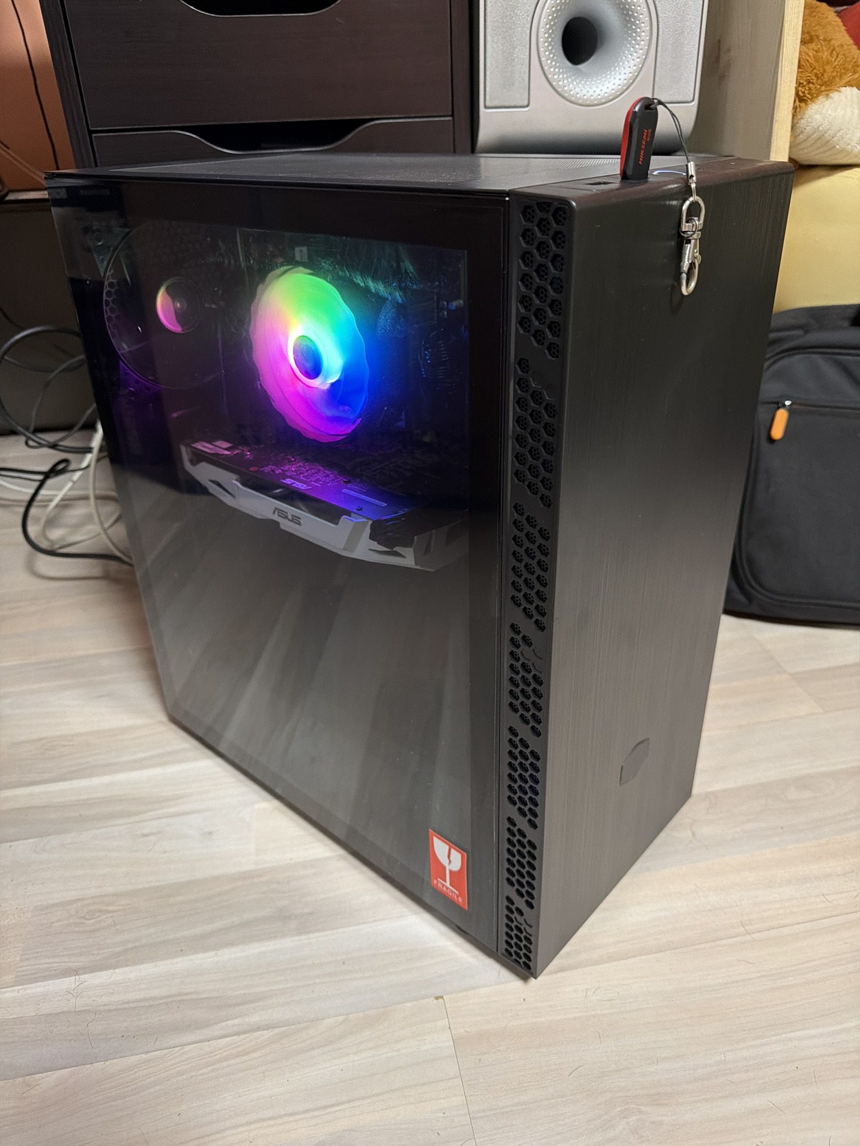 Üvegfalú ház (CoolerMaster), RGB proci hűtő, Win11.