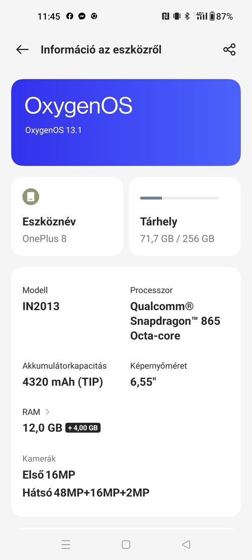 One plus 8 zafír kèk (posta az árban ) (eladva )