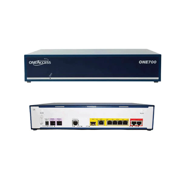 A OneAccess ONE700-1P Gb5T egy nagy teljesítményű, több szolgáltatást nyújtó hozzáférési router kis- és középvállalkozások, valamint fiókirodák számára, amely a következőket kínálja:Nagy sebességű Gigabit Ethernet portok, integrált VoIP/hagyományos hangátviteli támogatás, beépített tűzfal/VPN, fejlett QoS és OneOS6 az egységes felügyelethez, rugalmas WAN-ok (Ethernet, Fiber, DSL, LTE) támogatása, valamint teljes IP-hálózatokra való migrálásra tervezve, szolgáltatói szintű megbízhatósággal és virtualizációval. Főbb jellemzők és specifikációk:Csatlakoztathatóság : Gigabit Ethernet (GbE) portok (gyakran 2+5 konfiguráció), amelyek támogatják az Ethernet, Fiber, DSL és LTE WAN felcsatlakozásokat.Hang és adat : Integrálja a hagyományos hang-, IP-hang- (VoIP) és adatszolgáltatásokat, egységes átjáróként működve.Teljesítmény : Nagy kapacitású platform az állandó átviteli sebességért, még fejlett szolgáltatások esetén is.Biztonság : Integrált tűzfal állapotkövető csomagvizsgálattal, VPN-támogatással és behatolásérzékelő rendszerrel (IDS).Kezelés : CLI-n, webes felületen, TR-069-en és SNMP-n keresztül kezelhető, és támogatja a következő generációs OSS/NetConf-ot.Virtualizáció :