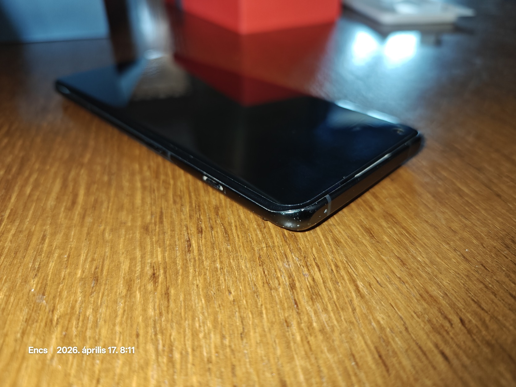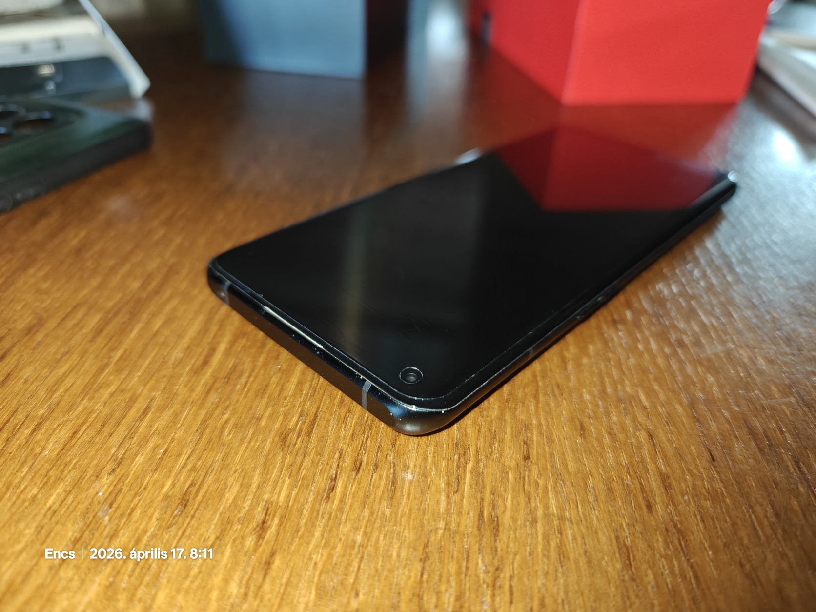 A tok alá jutott por miatt egyik saroknál van egy minimális kopás a fekete keretén, de alig látszik és tok alatt észre vehetetlen.