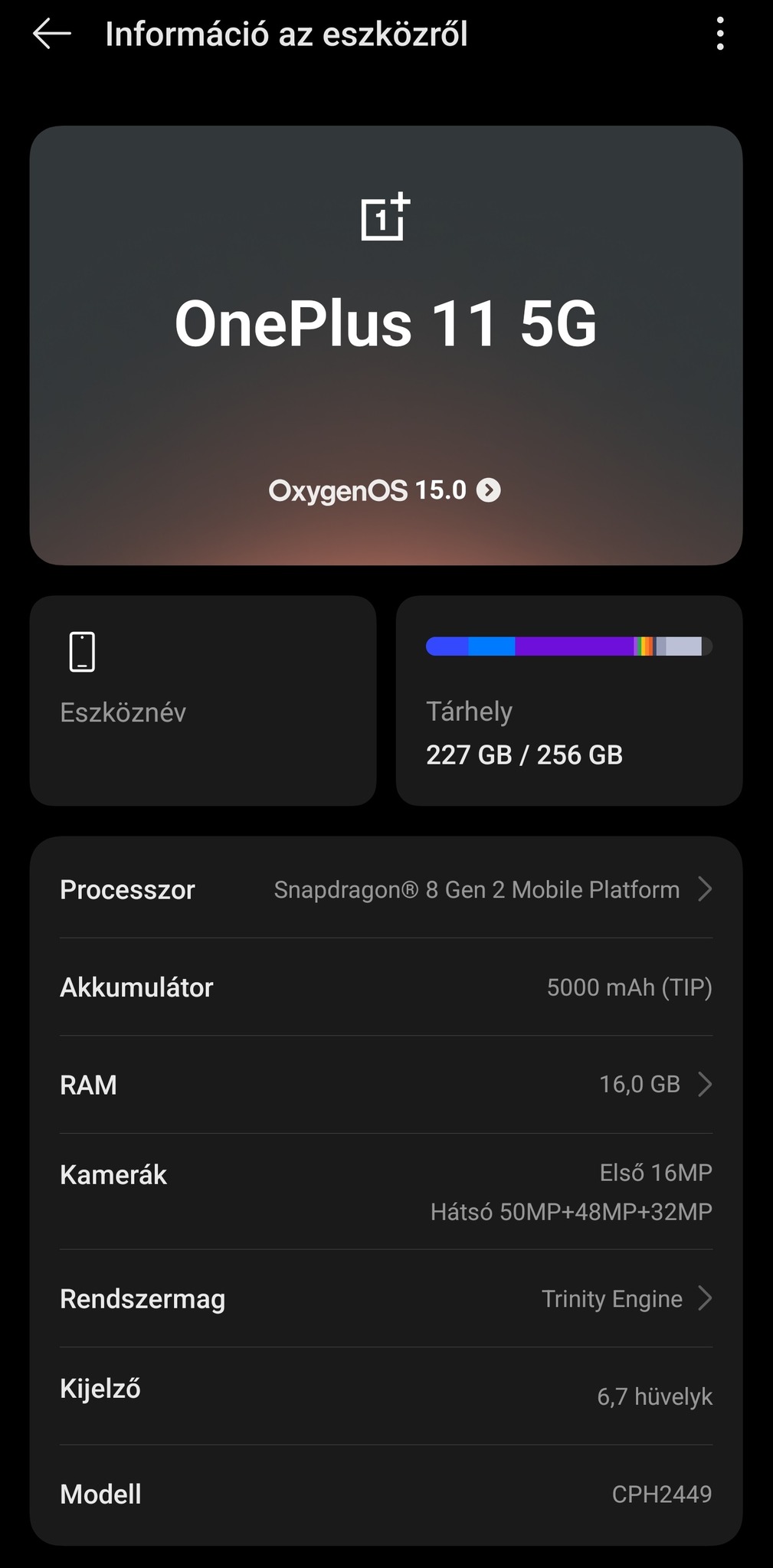 Gyári Android 15 fut rajta OxygenOS 15-tel.