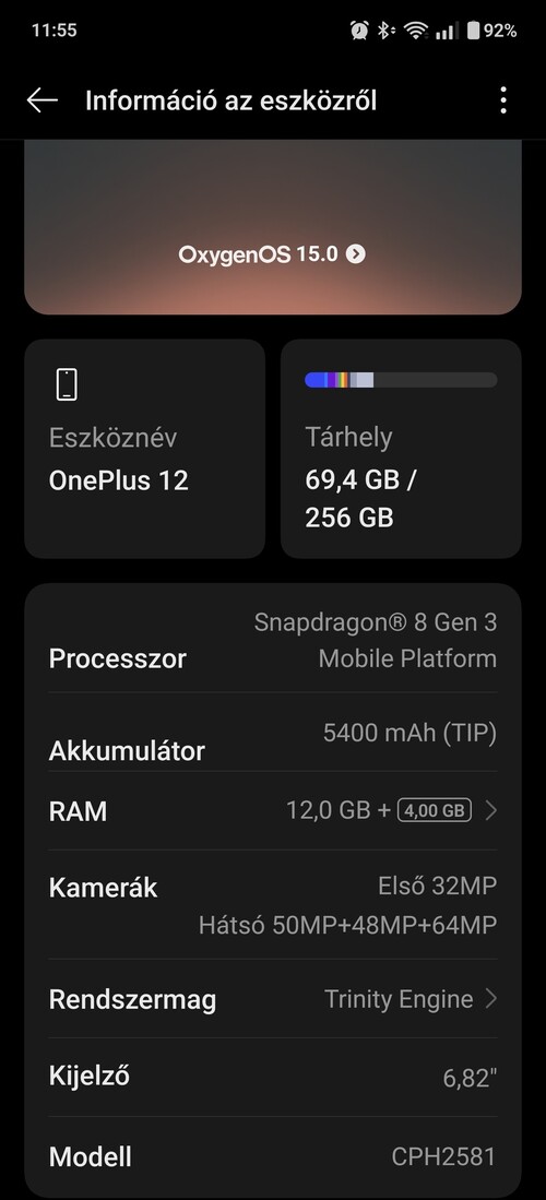 OnePlus 12 12/256GB EU modell / patika