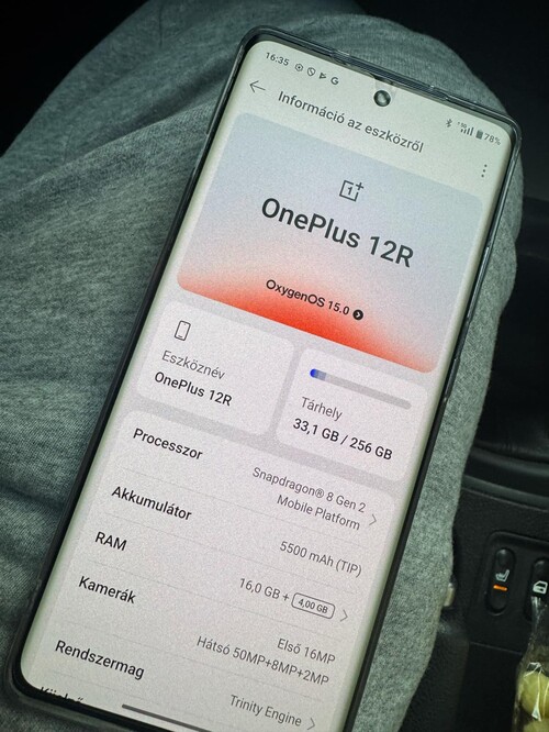 Eladó képen látható új állapotú Oneplus 12r 16/256gb.Dobozaban gyorstöltő és kábel (nem a sajátja) gyári tok, kijelzőn matt fólia.Brutal teló ,snapdragon 8gen 2 5500mah akksi stb.