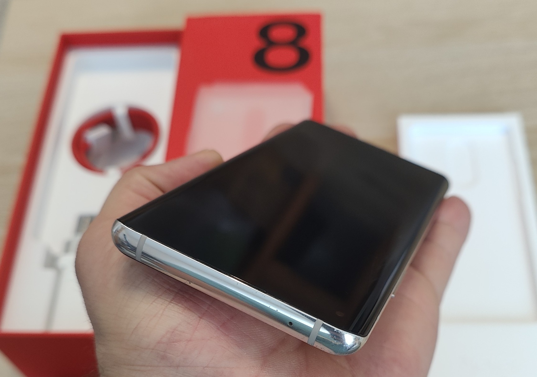 Eladó a képeken látható Oneplus 8 8/128GB Interstellar Glow telefon.