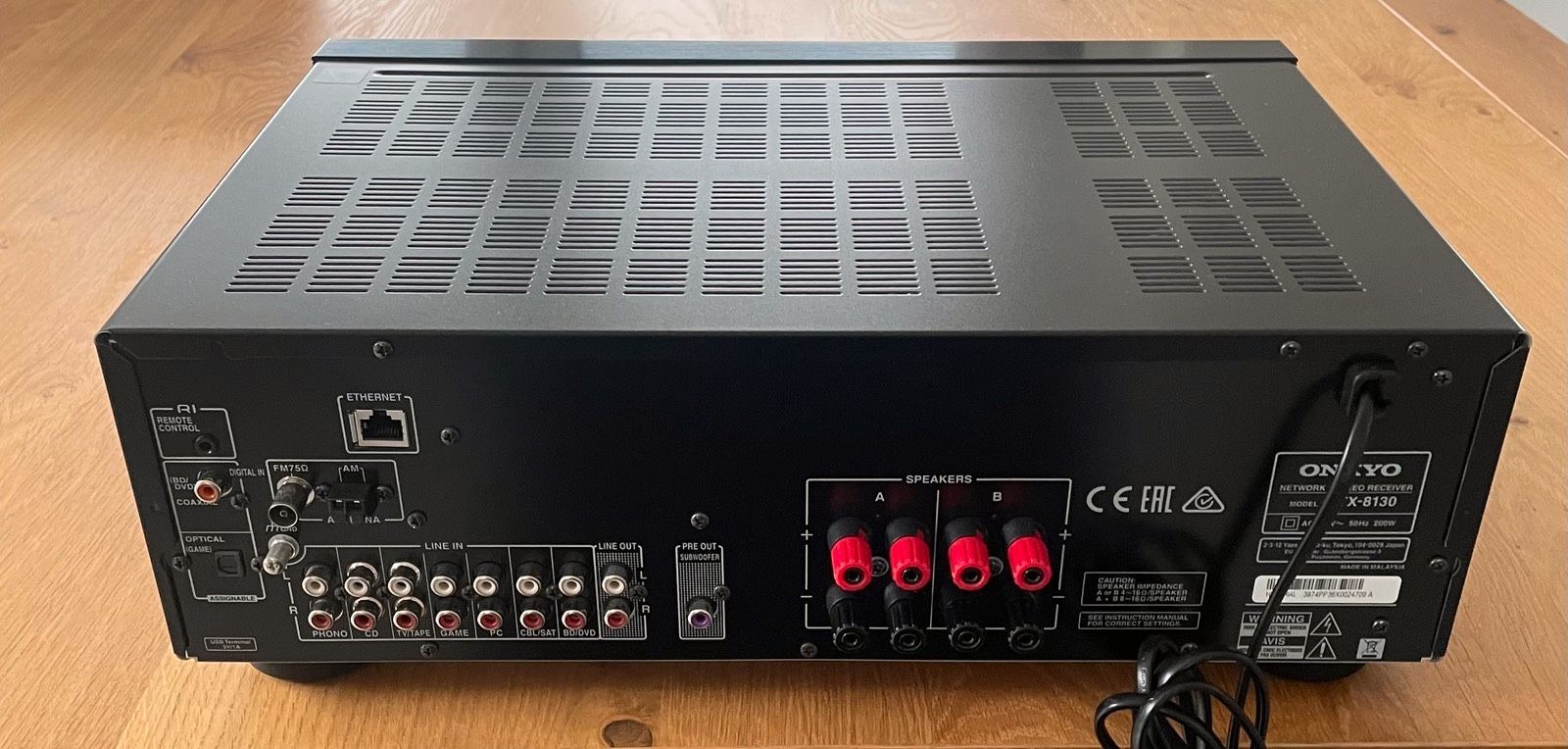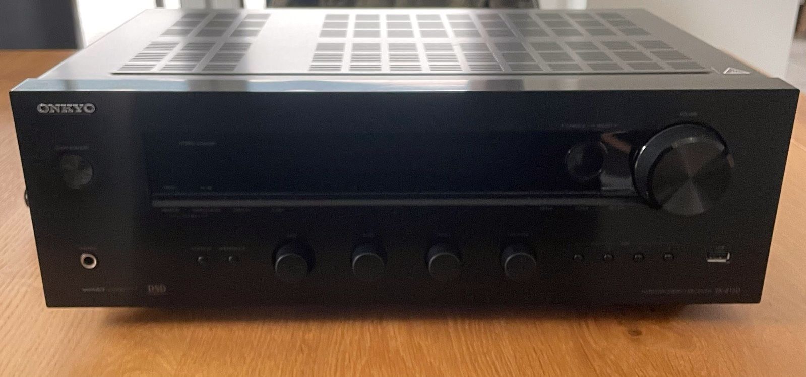 Onkyo TX-8130 sztereó hálózati rádióerõsítõ még garanciás FÉLÁRON újszeru (2x110w 6 óhm,1kHz, 7 audió bemenet,Phonó is,AM/FM analóg rádió,AKM AK4452 384 kHz / A 32 bites Hi-Grade DAC,Airplay,DLNA,Spotífy,Lejátszható formátumok:DSD,WAV,FLAC,AAC,WMA,MP3 stb..)hangminõségben sokban felülmúlja a házimozi erõsítõket..Bolti Ár:2099000) garanciával:ÁR:99990Ft fixár