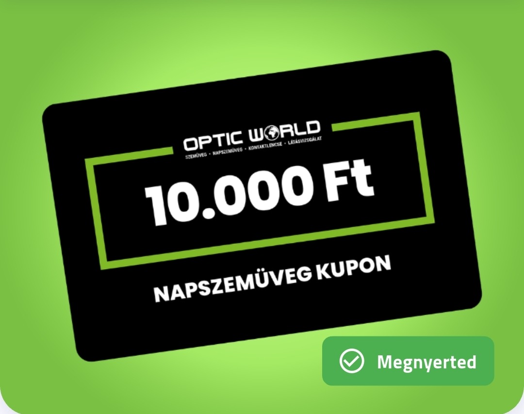 Nyertem egy napszemüveg kupont 10.000 Ft értékben az Optic World-nél. A beváltáshoz minimum 20.000 Ft összegben szükséges vásárolni az üzletek valamelyikében, vagy a webshopon.