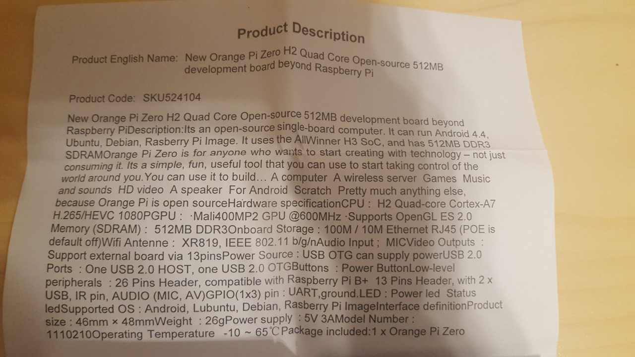 Orange Pi Zero H2 - QC- 512Mb - WiFi