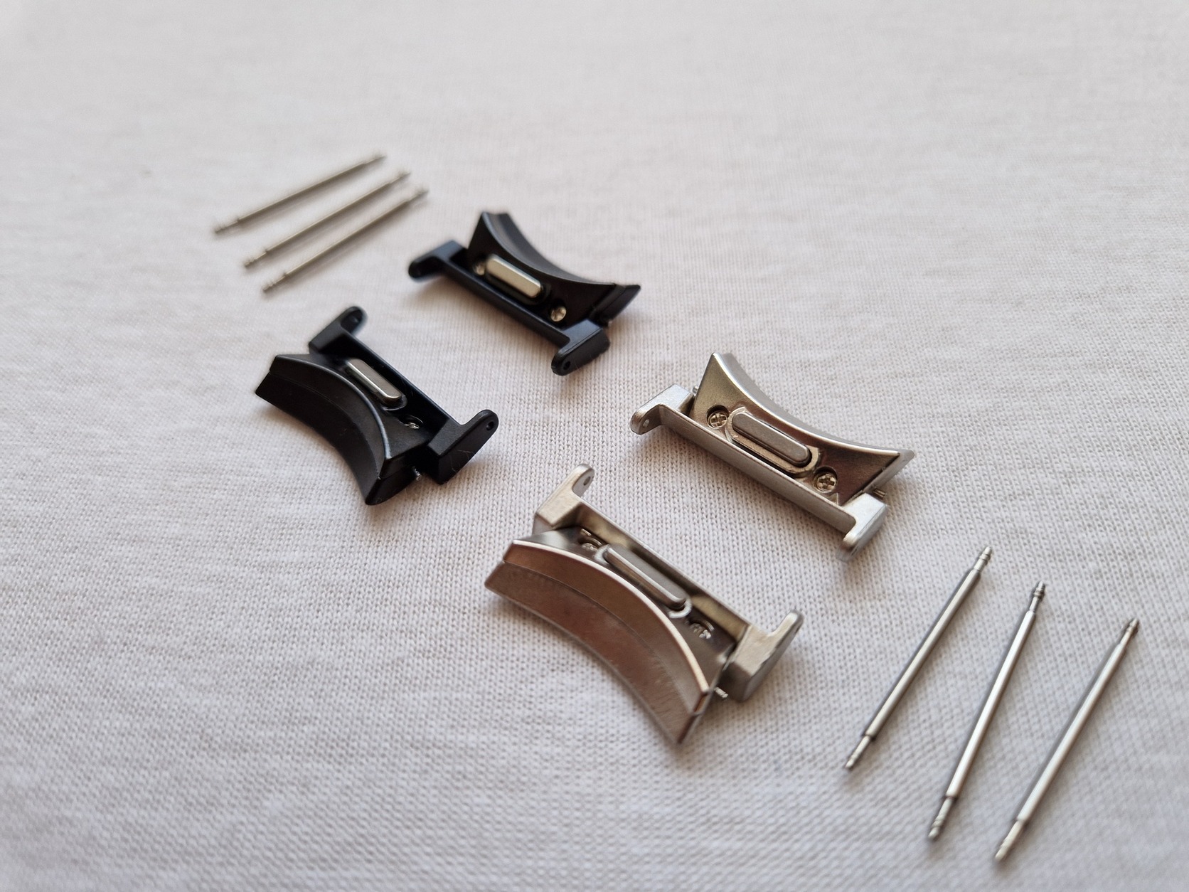 Eladó fekete vagy ezüst színben óraszíj átalakító. Ezzel Samsung Galaxy Watch4 Watch5 Watch6 Watch7, Watch 4 5 6 7, órához tudsz normál, egyenes végű óraszíjat használni. 20mm vagy 22mm-es szíjat tud fogadni.
