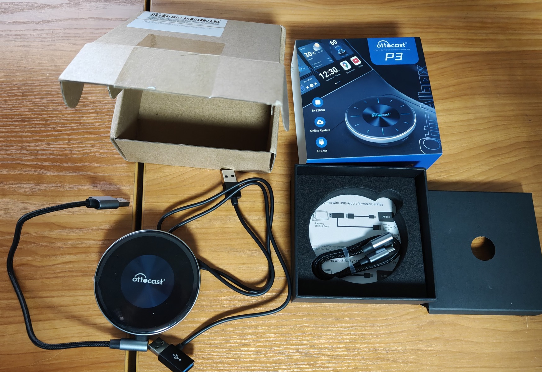 A Csomag Tartalma: Ottocast OtooAiBox P3 Adapter USB-C - USB-A Kábel USB-C - USB-C Kábel Tápkábel Felhasználói Kézikönyv