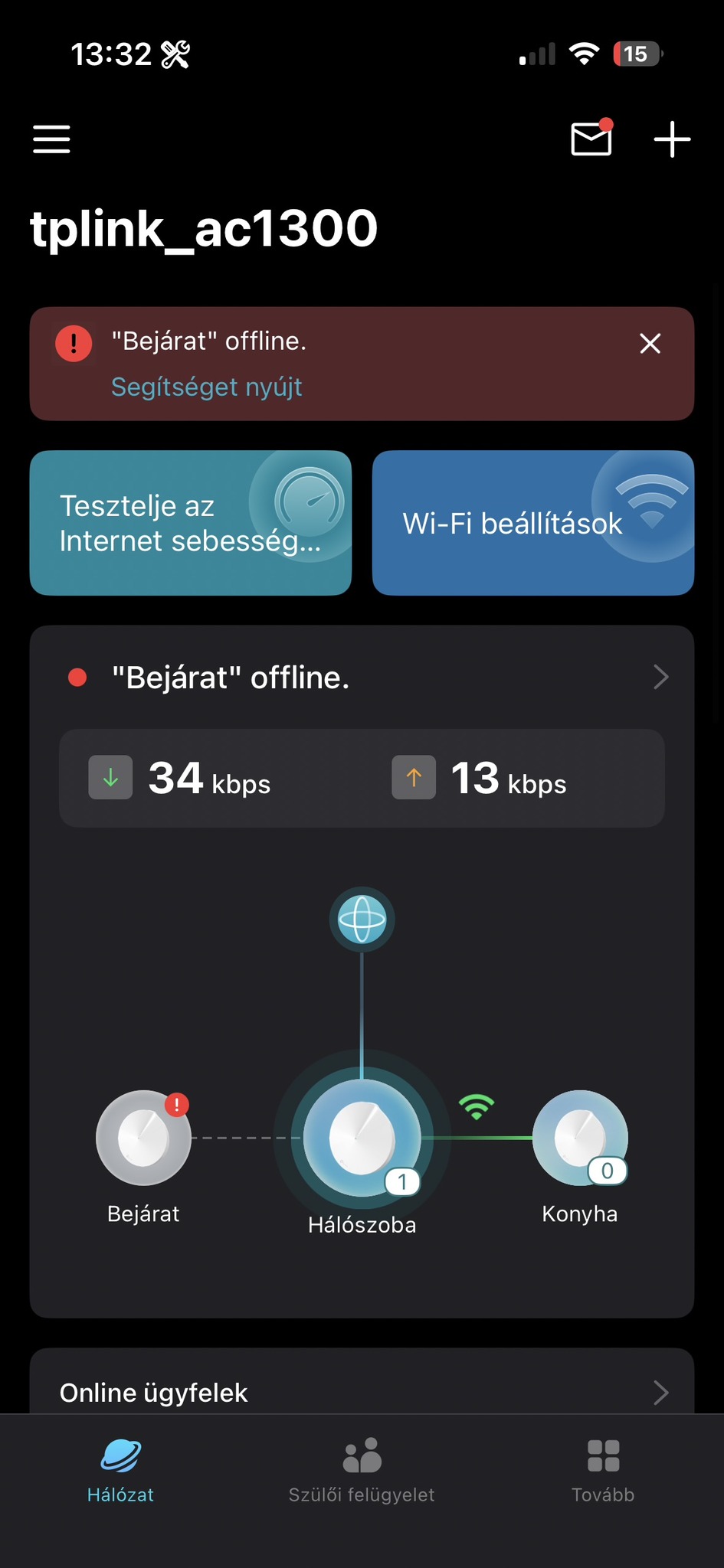 Wi-Fi sebesség 1300 Mbit/s