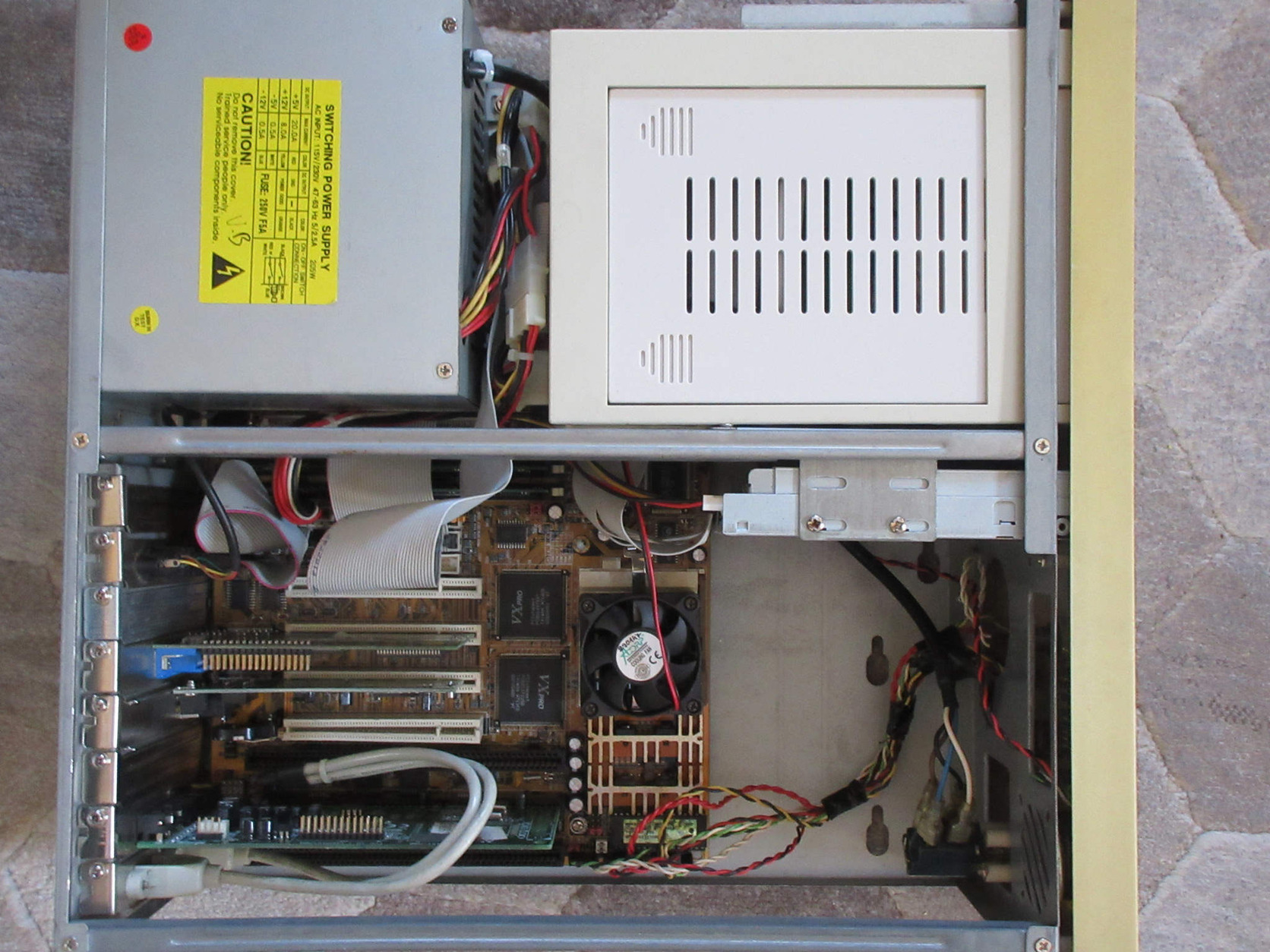 kis floppy és még egy 2.4 GB Quantum IDE HDD került bele 5.25" > 3.5" beépítőkeretben.