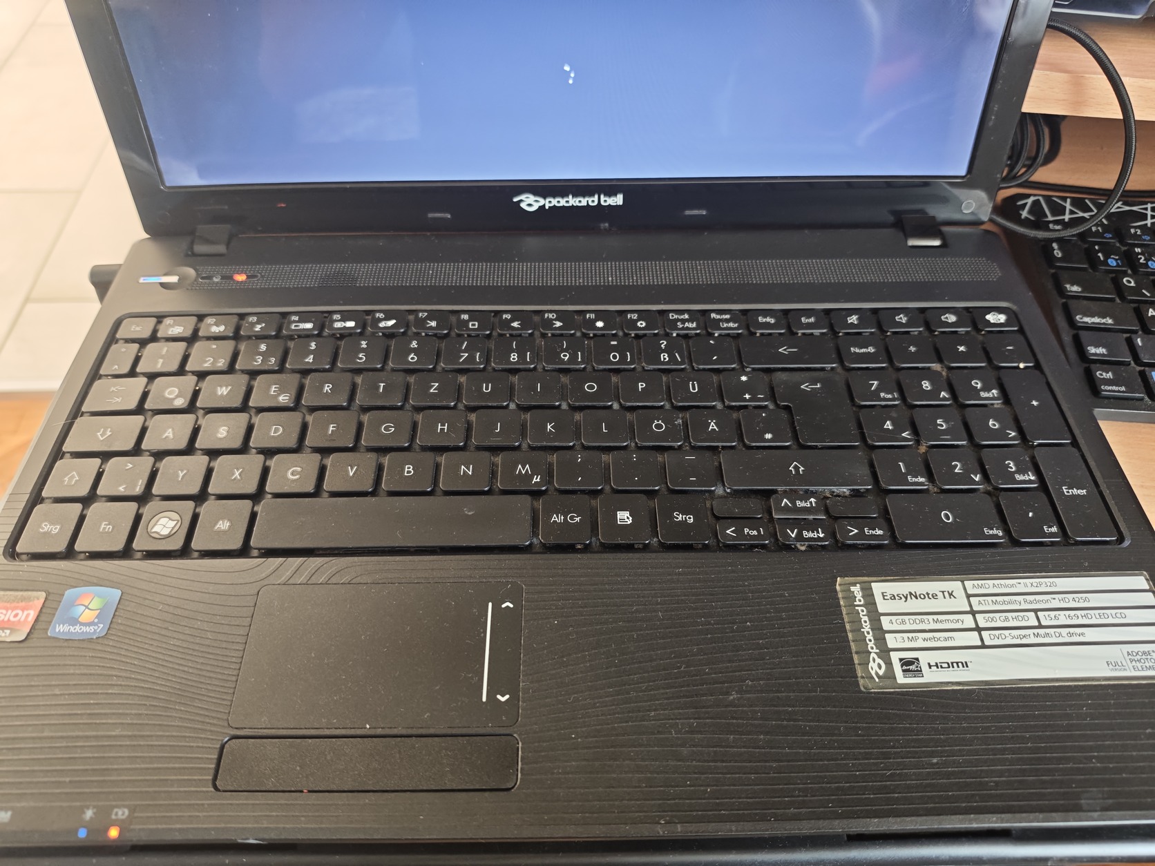 Packard Bell EasyNote TK, Amd Athlon II X2P320, Ati Radeon HD 4250, 500Gb hdd, 8Gb ddr3 ram.