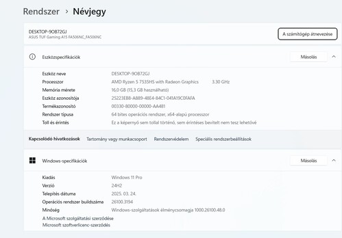 Eladó erős GAMER laptop! ASUS TUF A15 AMD Ryzen 5 7535HS, 512GB SSD, RTX 3050 Garanciális!