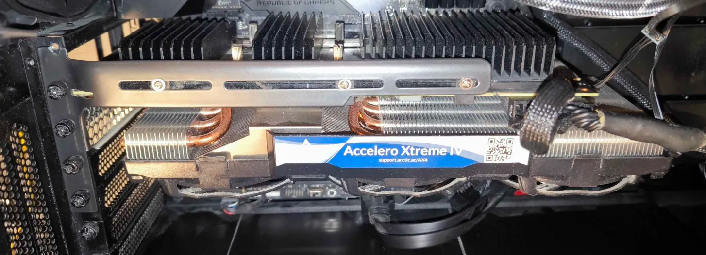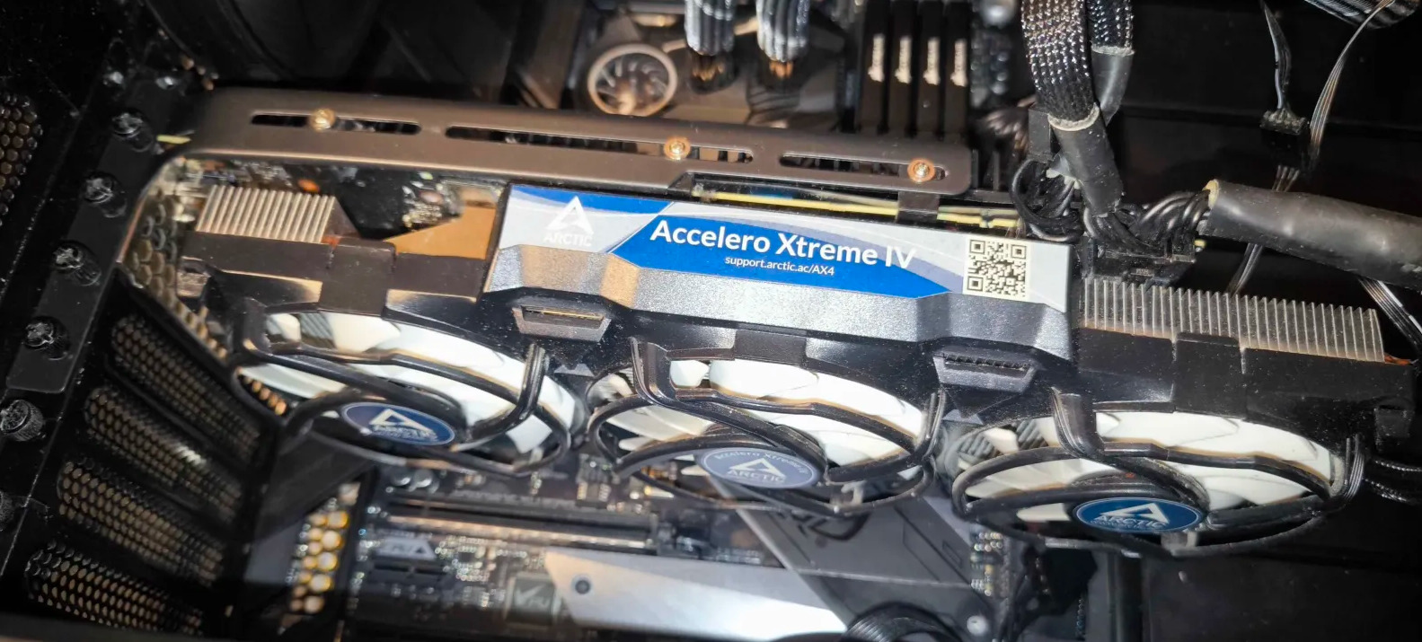 Hűtés: Arctic Accelero Xtreme IV – 3 ventillátoros, 5 hőcső, nagy hűtőborda