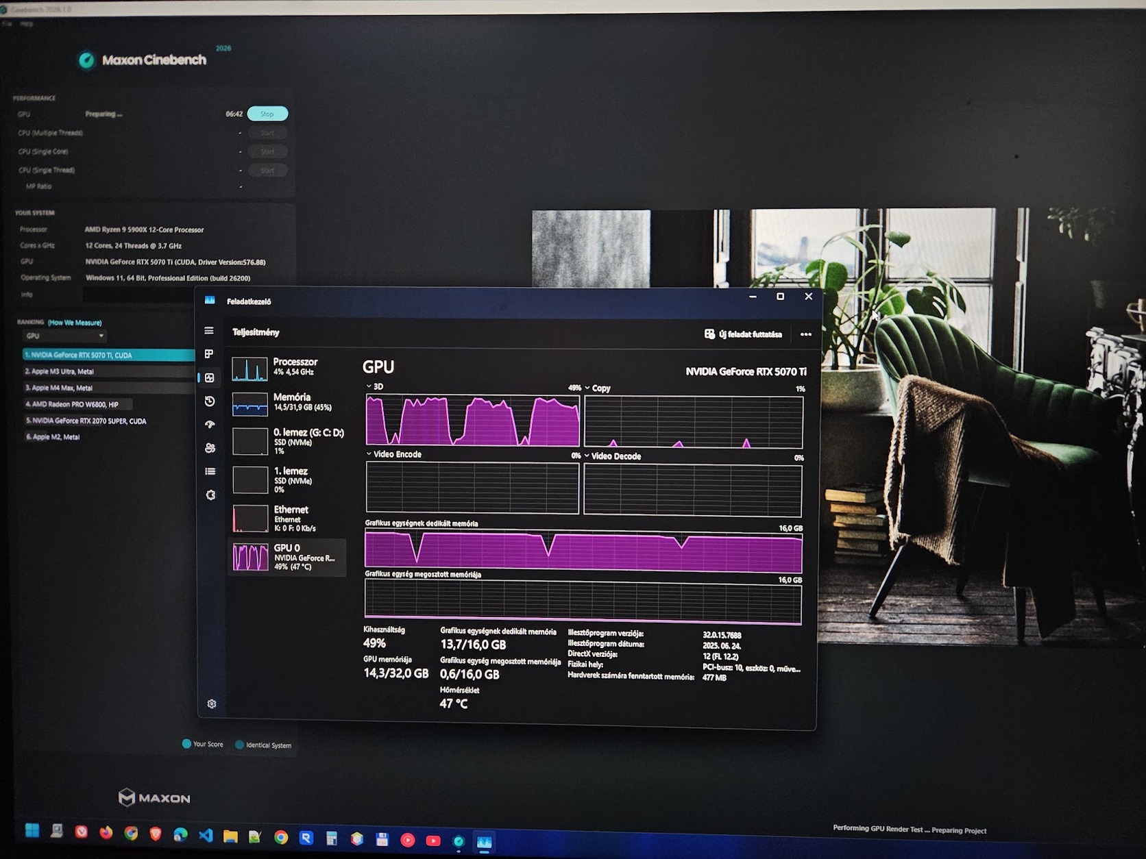 3DMark, Furmark, Cinebench teszt a képeken.