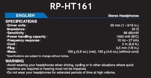 Panasonic RP-HT161 fejhallgató. A nagy mérete miatt nagyon kényelmes.