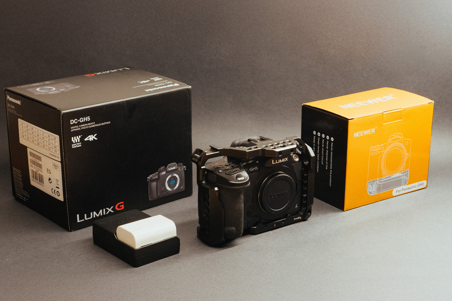 Lumix GH5 váz, telepített V-loggal, cage-el, portrémarkolattal, 2 akksival eladó.