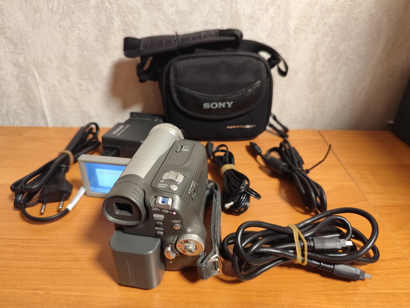 Eladó a képeken látható kamera+128MB SD kártya (fényképezéshez), Sony hordtáska, kábelek, töltő saját dobozában magyar nyelvű kézikönyvvel. Az akkumulátor működik ugyan, de korából adódóan hosszabb távú használathoz ajánlott a cseréje!