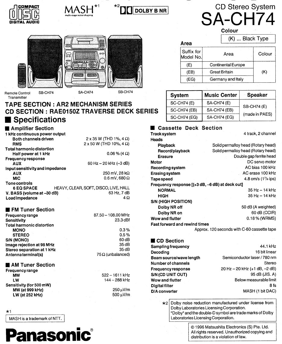 Panasonic SA-CH74 típusú egykori erősen felsőkategóriás/ közel csúcs mini HI-Fi retró!