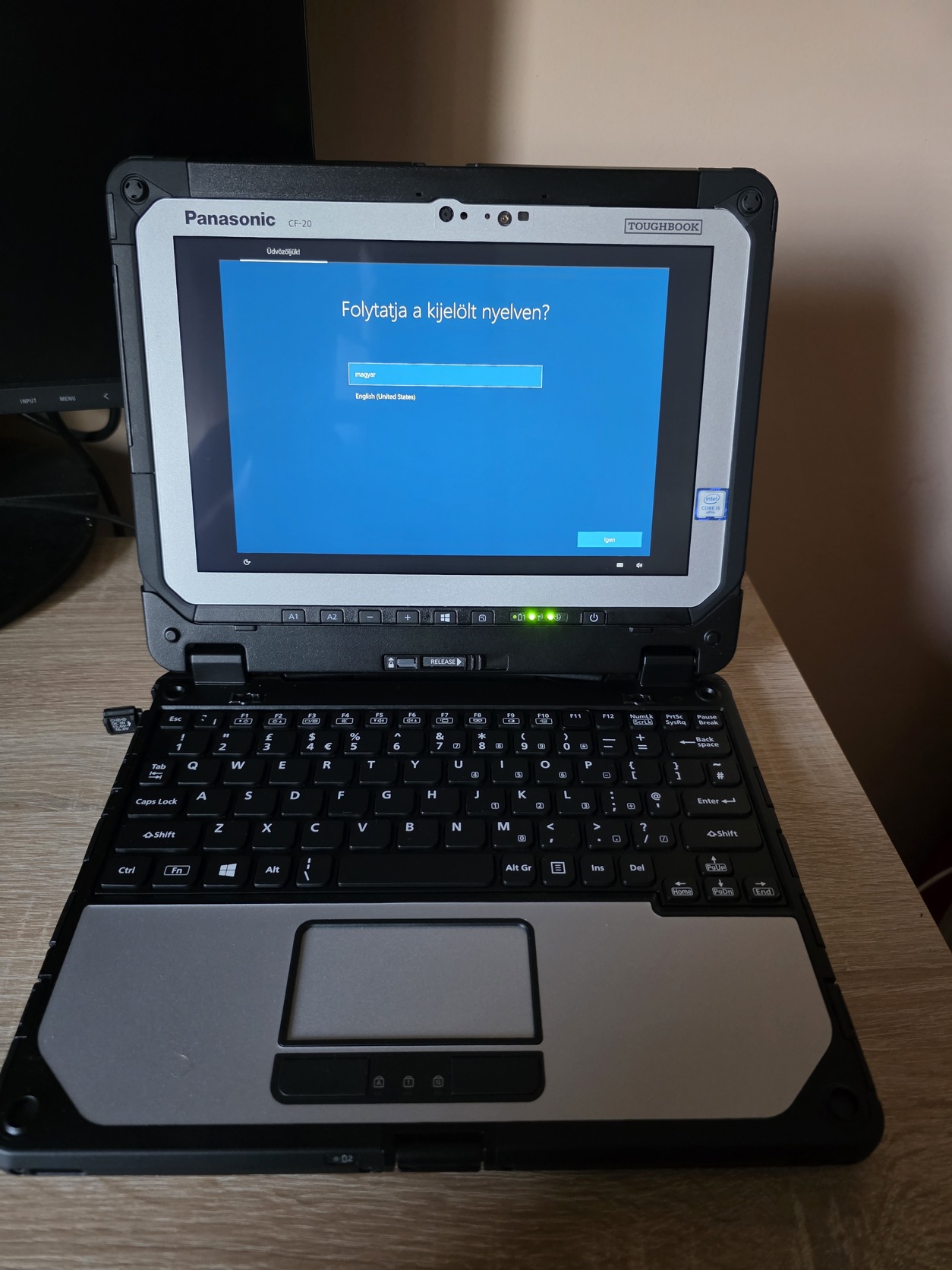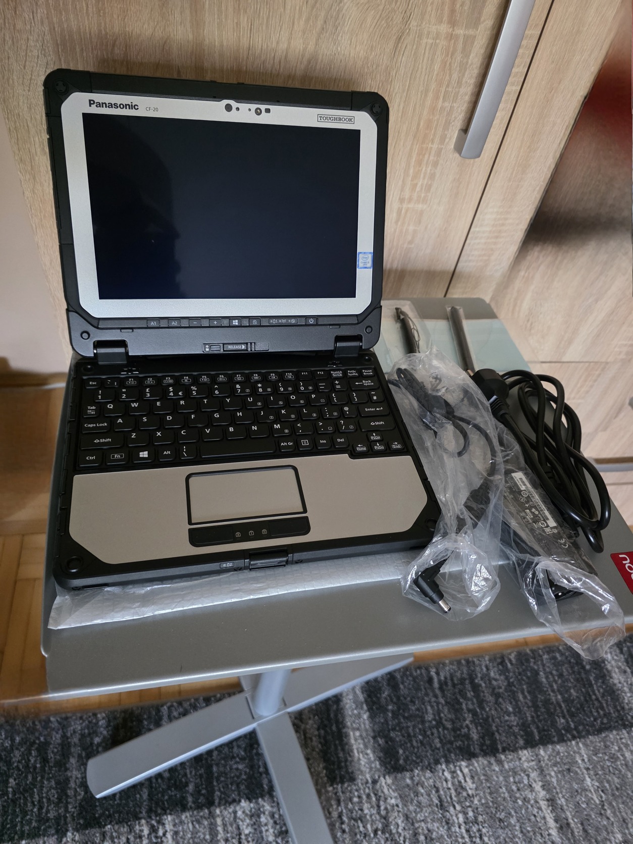 Sosem használt, a fotózás erejéig kibontottam. Minden gyári tartozékával, saját dobozában eladó ipari táblagép/laptop.