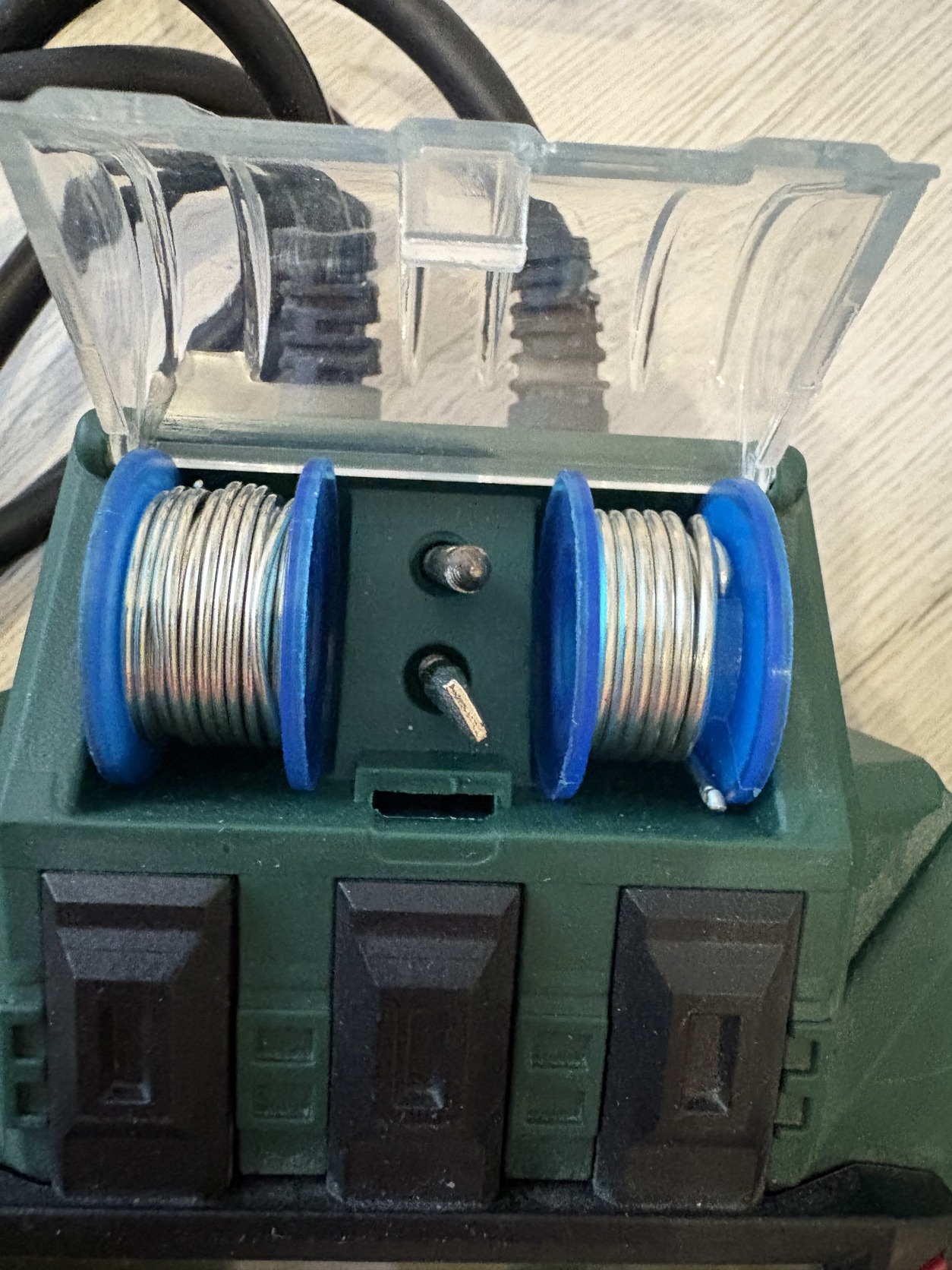 - Külön forrasztóón-tartó zárt védőketreccel