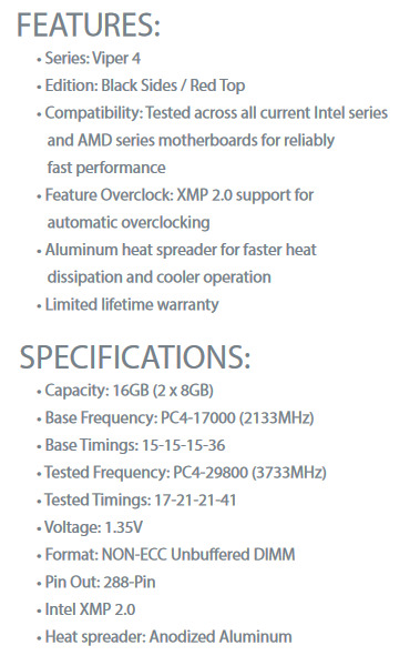 Patriot Viper 2x8GB 3733 MHz DDR4 KIT CL17