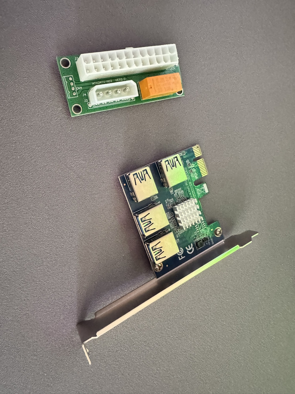 Az egyik egy pcie usb elosztó, a másik egy kis átlakaító 24 pinről molex-re, ha jól értelmezem.
