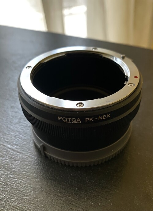 Újszerű állapotú Fotga PK - Nex adapter (Pentax K objektív Sony E vázra).