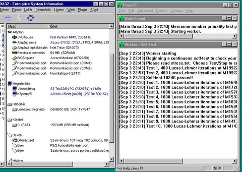 A processzor hibátlanul megy 200 MHz-en, ahogy a tesztkép is mutatja.