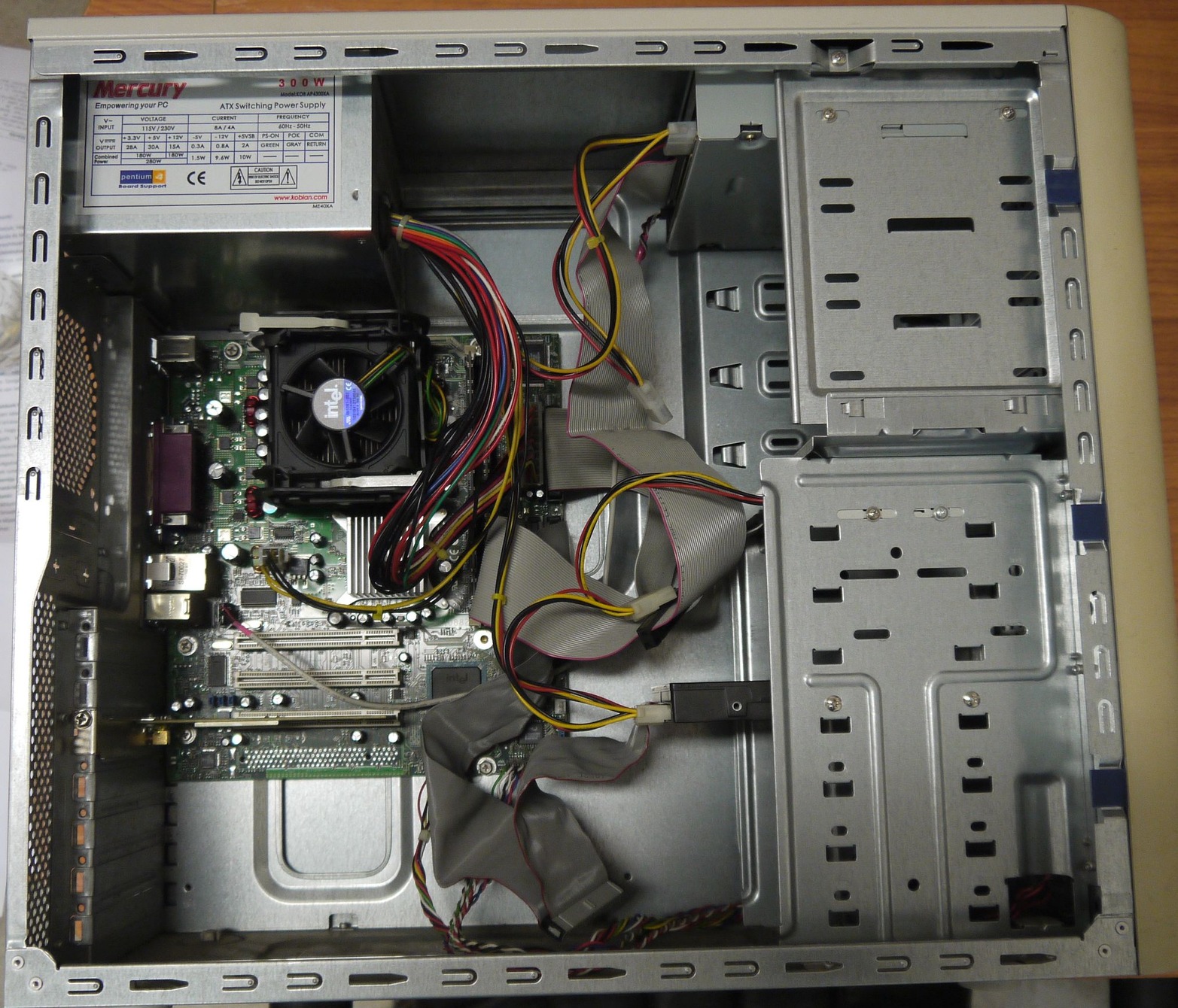 1.8 GHz Northwood CPU, 845-ös chipset, 1.44 MB FDD, CD-ROM, Maxtor 40 GB IDE HDD (90/100%), 2x512 MB 2100 MHz DDR1 RAM, integrált hang és net. Minden működik. (Hangszórót/mikrofont nem dugtam bele, szóval az nem 100%.)