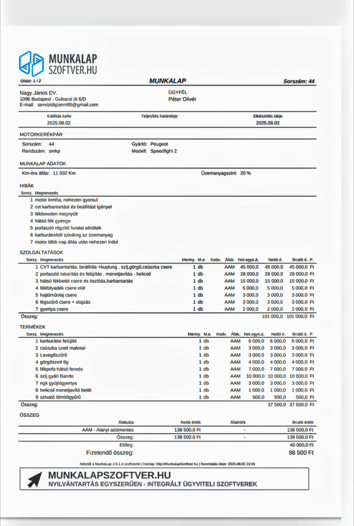 Teljes cvt váltó felújítás, olaj, szíj ,fékek, fék folyadék, karburátor felújítás, teljes karbantartás elvégezve. Erről a munkalap a képek között. Költségmentes , hibátlan a motor, csak használni kell. Ezért ennyi az ára. Új tükrök, új izzók, új 12v akkumulátor, telefon tartó. Sport kipufogóval szerelve. 3-3.5 literrel el lehet járni vele. Csak prémium benzint tankoltam bele ( minden számla megvan) és xado, motul olajat. Végsebesség: 90km/H, budapesti közlekedésben is remekül helytáll.
