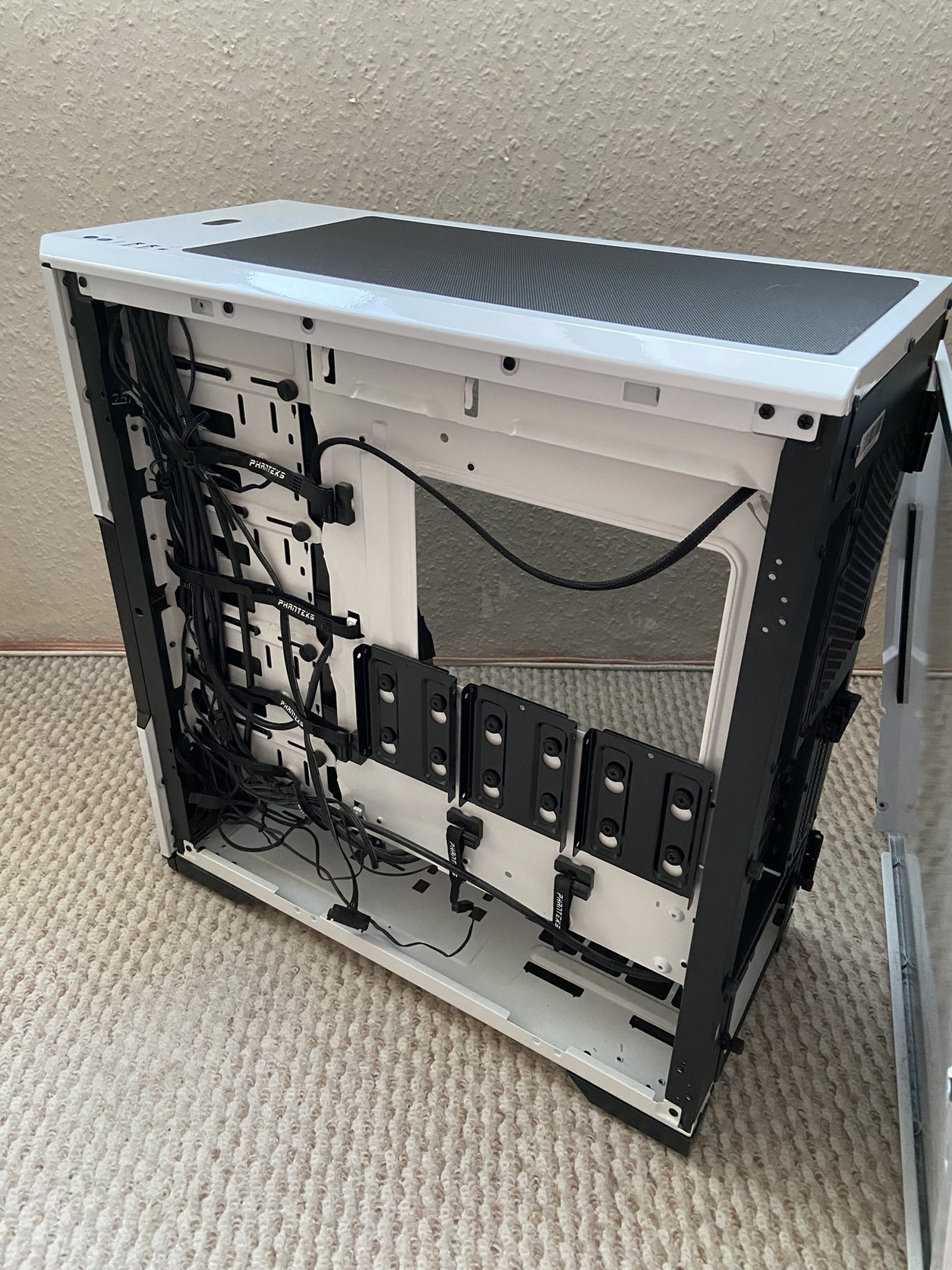 Kissebb házra váltás miatt eladó. Hibátlan, tudomásom szerint minden gyári tartozéka megvan hozzá. Elöl három D-RGB Phanteks venti, hátulra egy BeQuiet ventit vettem, amit adok a házhoz.