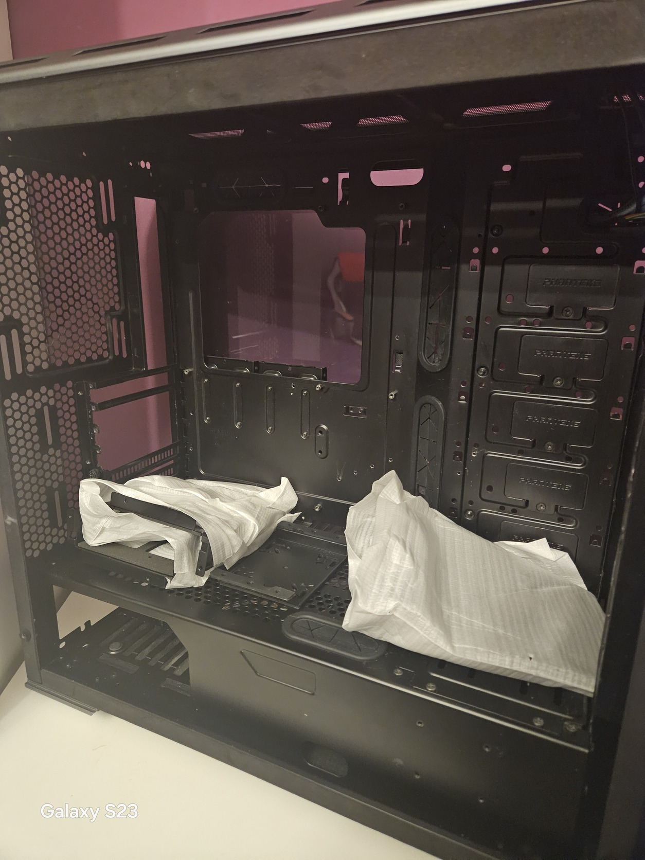Van némi át alakítás rajta Én is már így vettem pl előre be lehet rakni 280mm víz hűtőt. Felső tartója nincs meg,elől a led ki van véve csak a bekapcsoló gomb világít.