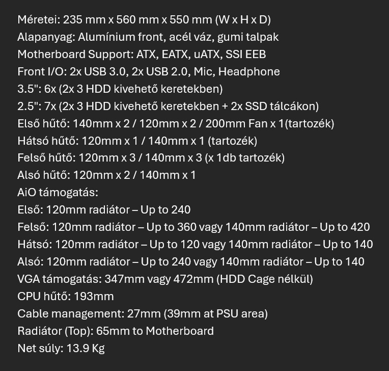 Gyártói linket sajnos nem tudok már hozzá mert megszűnt termékről van szó és lekerült a Phanteks oldaláról.