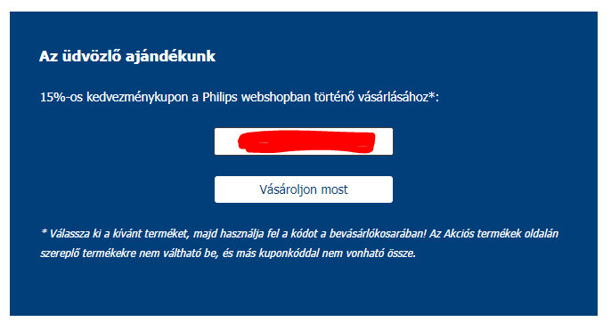Philips 15% kuponkód amit a philips webáruházban tudsz bevàltani. Egy pozitív èrtèkelèst kèrek cserèbe semmi többet.