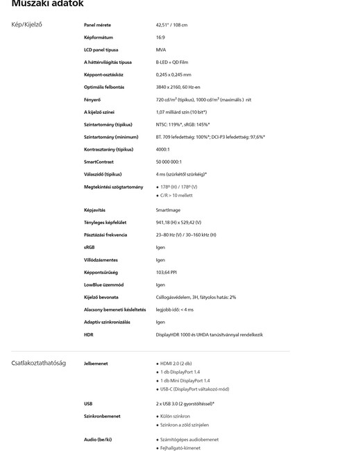 Philips 436M6VBPAB LED monitor, Átmérő:108cm G-sync