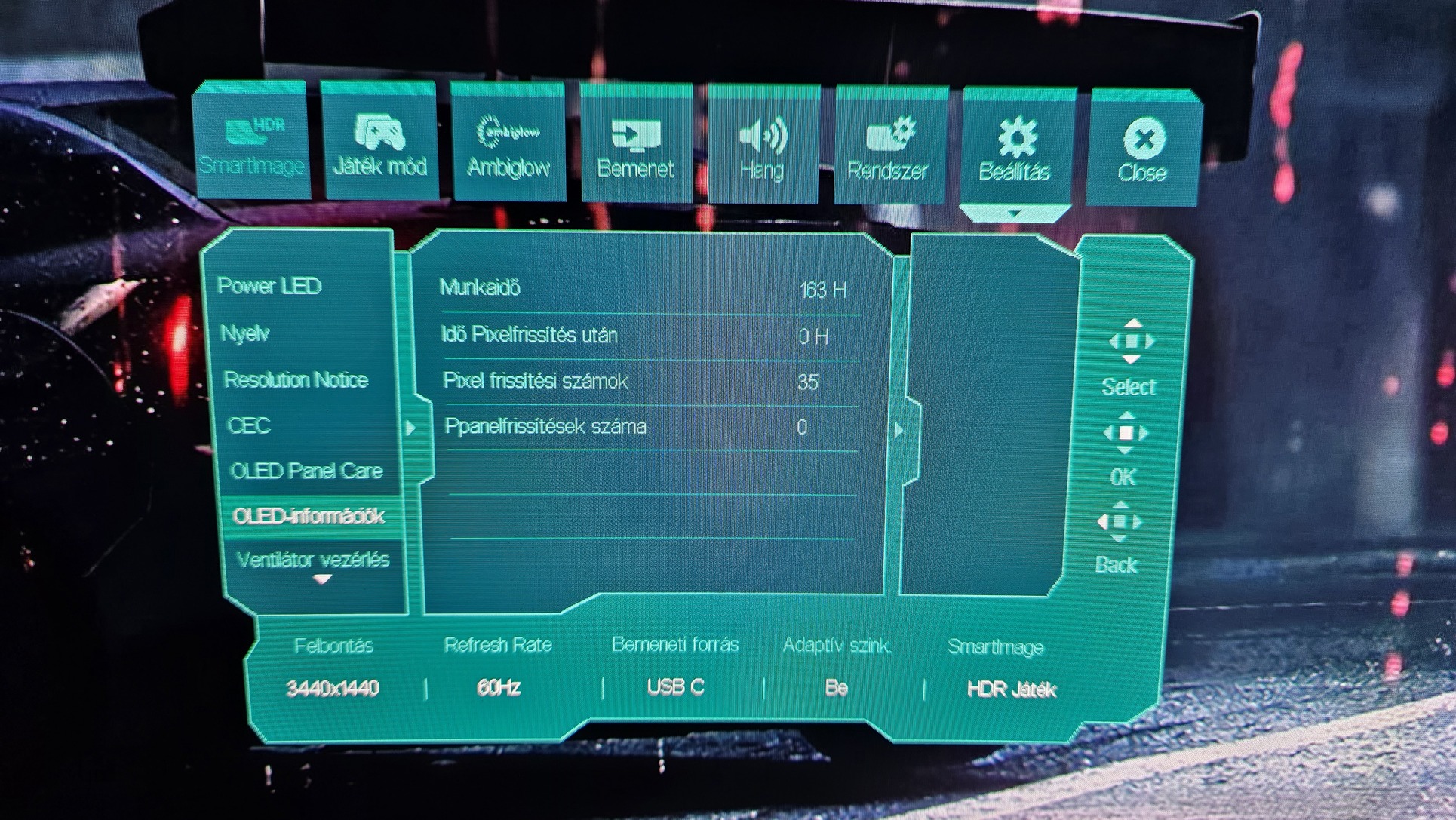 Felbontás 3440 x 1440