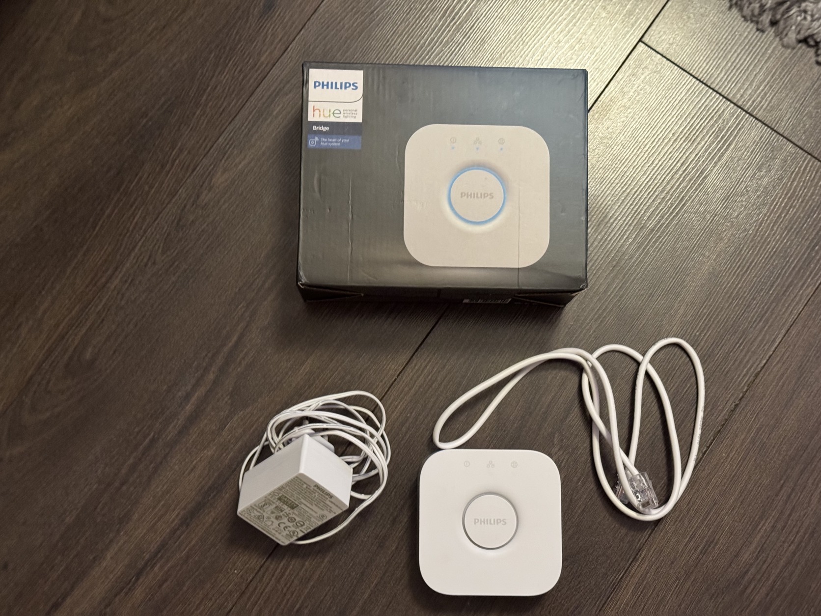 Eladó Philips Hue bridge. Saját dobozában, gyári táppal, patch kábellel. Az azonosítókat kitakartam a képen.