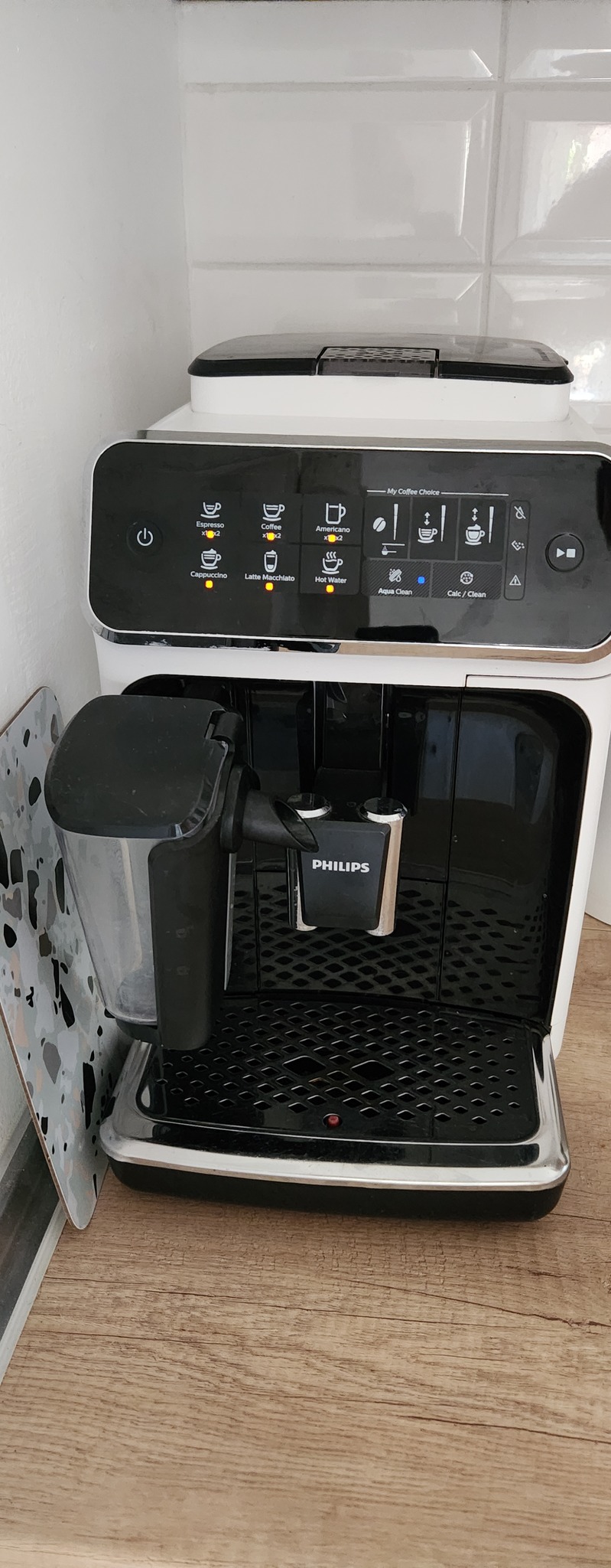 -A tejhabosító tartály az évek során már valamennyi gőzt tud veszteni, én egy csészét alá szoktam tenni, hogy feszes maradjon az illesztés (azért ez nem kötelező).