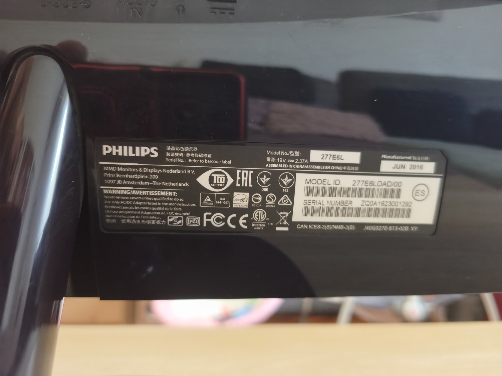 Philips Monitor 27" FullHD 277E6L