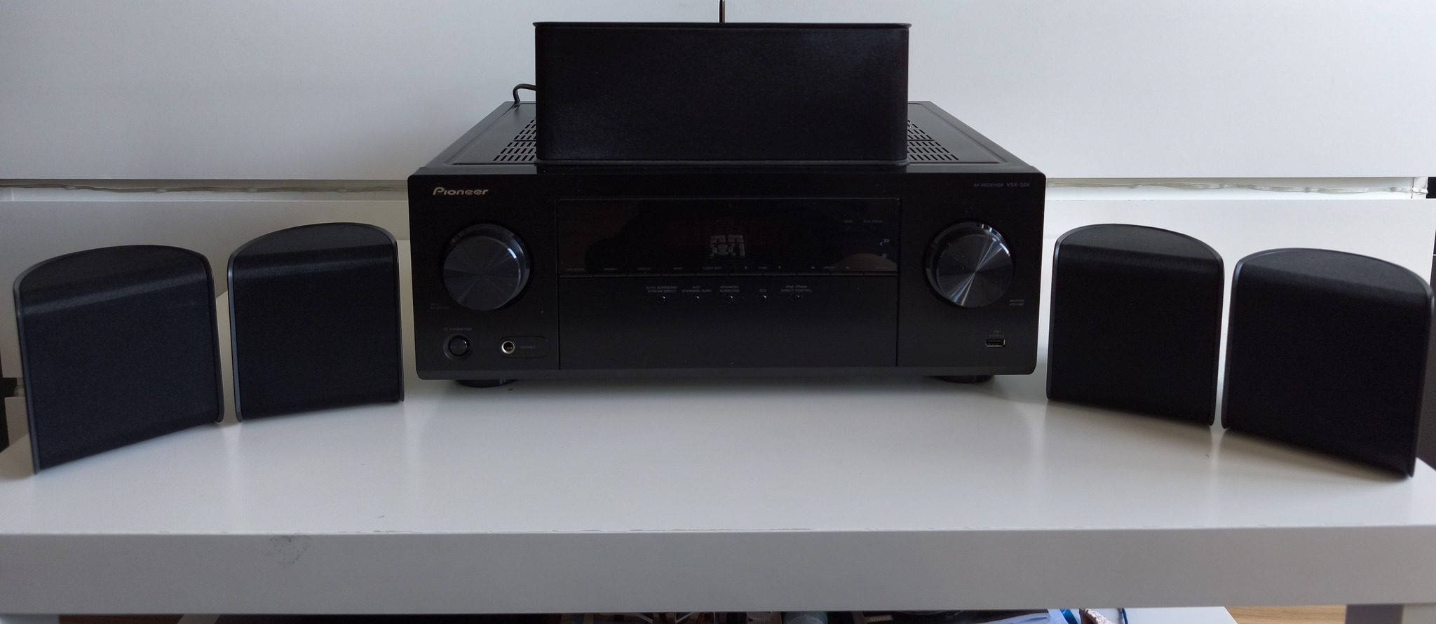 Eladásra kínálom kiváló esztétikai és műszaki állapotú Pioneer 5.1 házimozi rendszeremet, ami egy VSX-324-K-P típusú erősítőből, és egy 5 darab S-11A-P hangszóróból és 1 darab S-22W-P mélynyomóból áll. Gyári távirányító és kábelek, továbbá 1 darab optikai kábel tartozik hozzá. Eredeti doboza már nincs meg, de két másik dobozban, becsomagolva várja új gazdáját.
