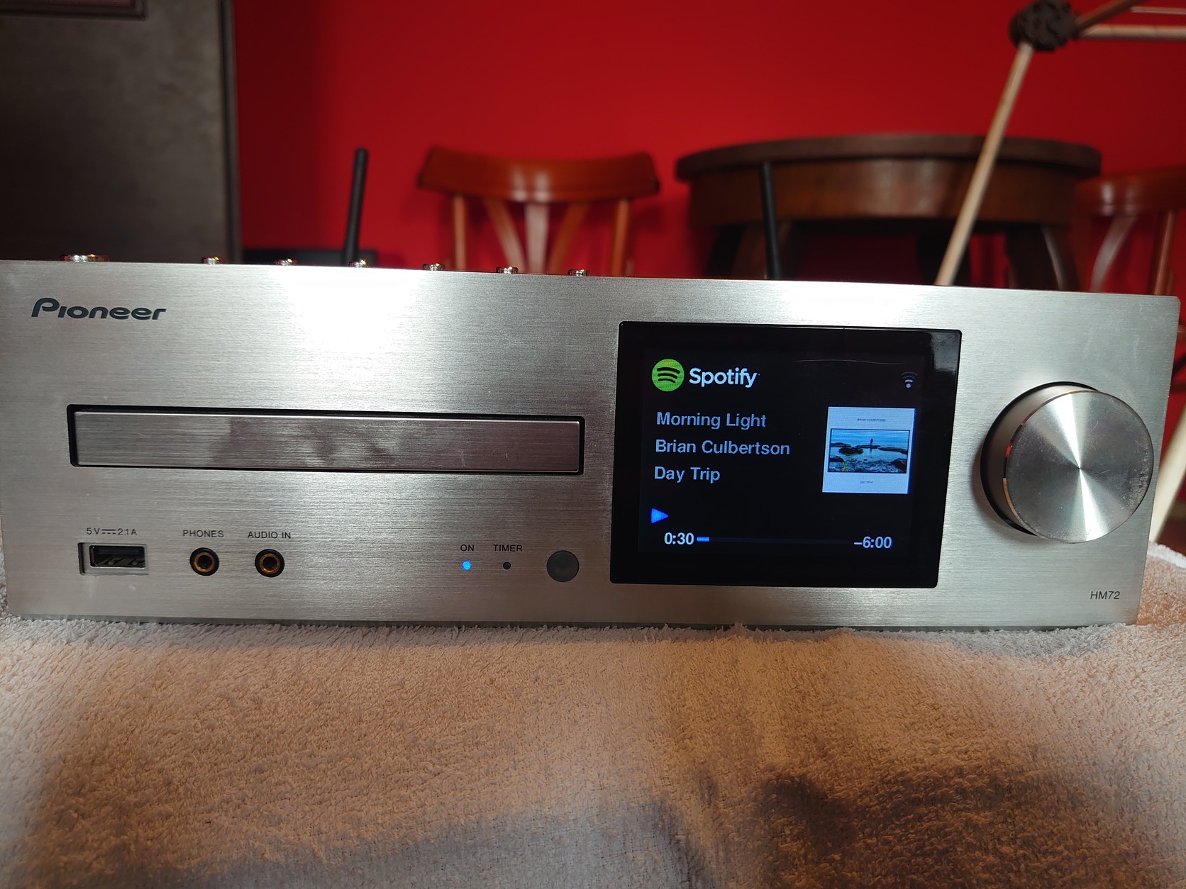Eladó Pioneer X-HM72 hálózati lejátszó, mindenes, Pioneer app-on keresztül vezérelhető iphone vagy android készülékről Nagyokat megszégyenítő hang, kis méretben. Aluminium előlap. Van benne anyag rendesen 6 kg Gyári távirányító, banándugókat fogadó hangfalcsatlakozó, subwoofer kimenet. Lan csatlakozó, 1.digitális optikai, és 2.analóg rca bemenet. Bluetoot, Spotify, Network, WiFi, USB, ipod, Cd játszó AM-FM rádió 2x 50W, Szines grafikus kijelzővel, a lemezborítókat megjeleníti. Személyesen kiprobálhatóT: +36-20-923-7820